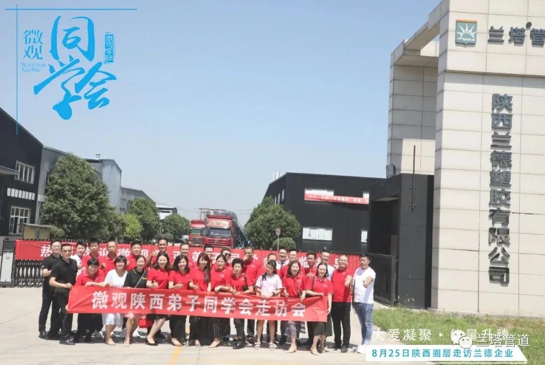 2020年8月25日,微觀同學會陜西首屆走訪會在陜西蘭德塑膠有限公司成功舉行,參會單位30多家來自陜西本土優(yōu)秀企業(yè),對蘭塔管道進行深入考察調研,公司董事長王佳妮女士親自接待并做詳細企業(yè)經(jīng)營介紹。