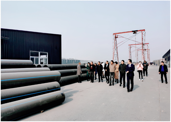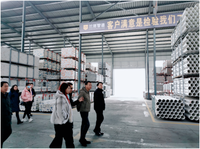 蘭塔管道董事長(zhǎng)王佳妮、營(yíng)銷總監(jiān)鄭小軍、生產(chǎn)總監(jiān)雷龍虎及公司核心領(lǐng)導(dǎo)王小莉,謝侍棋,郝巍全程陪同考察